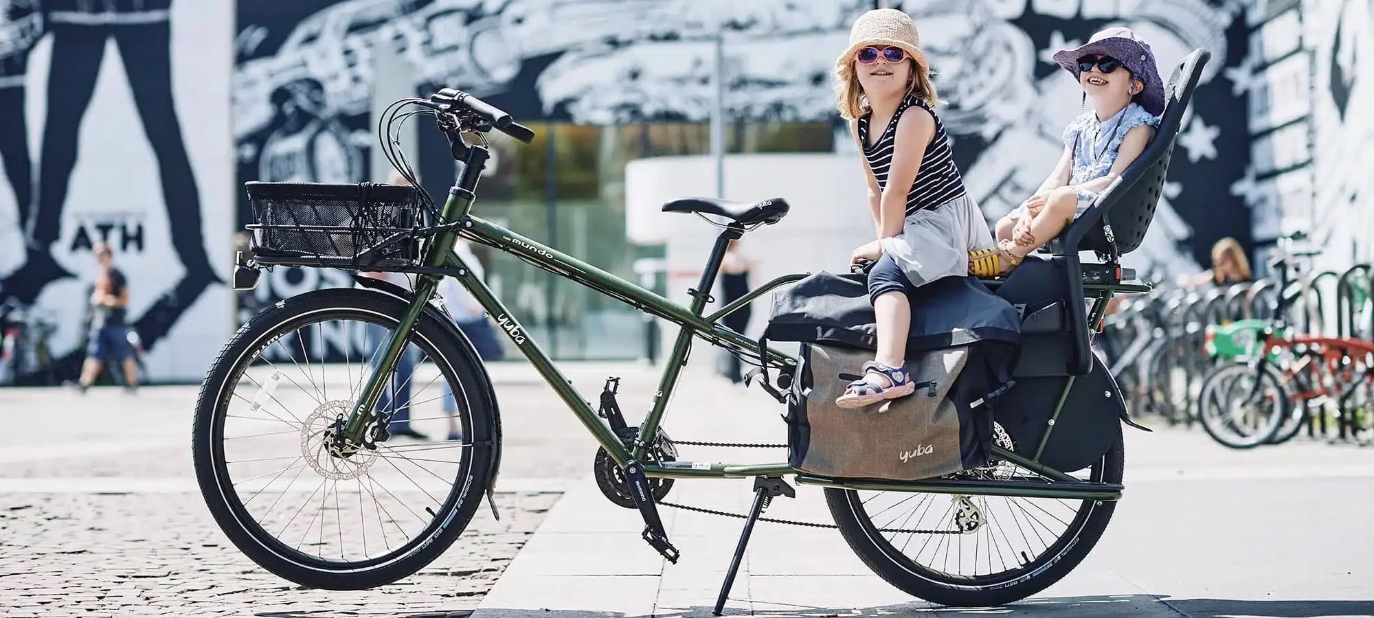 The Kombi is a cargo bike ready to go on all your adventures. This cargo bike is affordable, portable and practical. Whether you’re looking to spend less time in traffic, cruise past the drop-off line at school with your kids cheering you on, or get some groceries on your way home from work, the Kombi is your ticket to having more fun on two wheels, sharing adventures and making new discoveries. Its name conjures up road trips and summer fun and is a nod to the adventurer in all of us. Yuba took the best parts of its most popular models and “kombined” them to create a cargo bike that everyone will love – from riders to passengers.